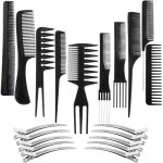 10 Pcs Salon Hairdressing Anti-Static Hair Cutting Comb Rat-Tail Comb Make-up Comb Clips